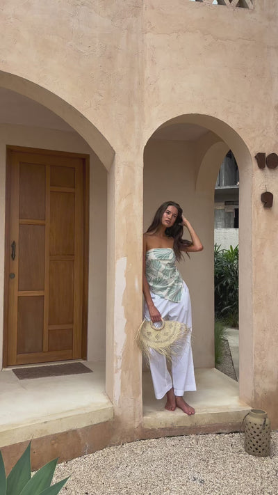 A light poplin pant, perfect for beach days. Casual but with cute details making it easy to dress up or down. Boxer waistline and pockets for all of your summer treasures. Wear with bikinis underneath, our knit tanks or a cosy jumper for fresh morning coffees.