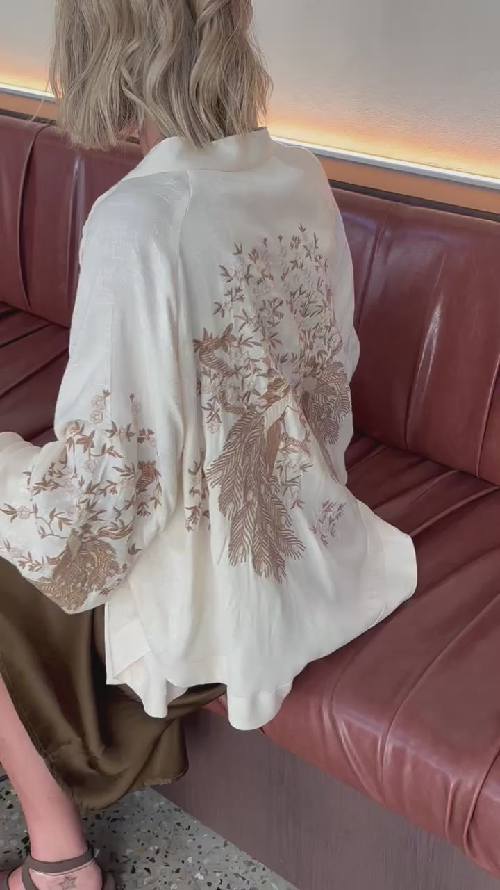 Beautiful Cotton Jaquard fabric that we had hand loomed espesially for these pieces. With our signature embroidered Lyrebird.