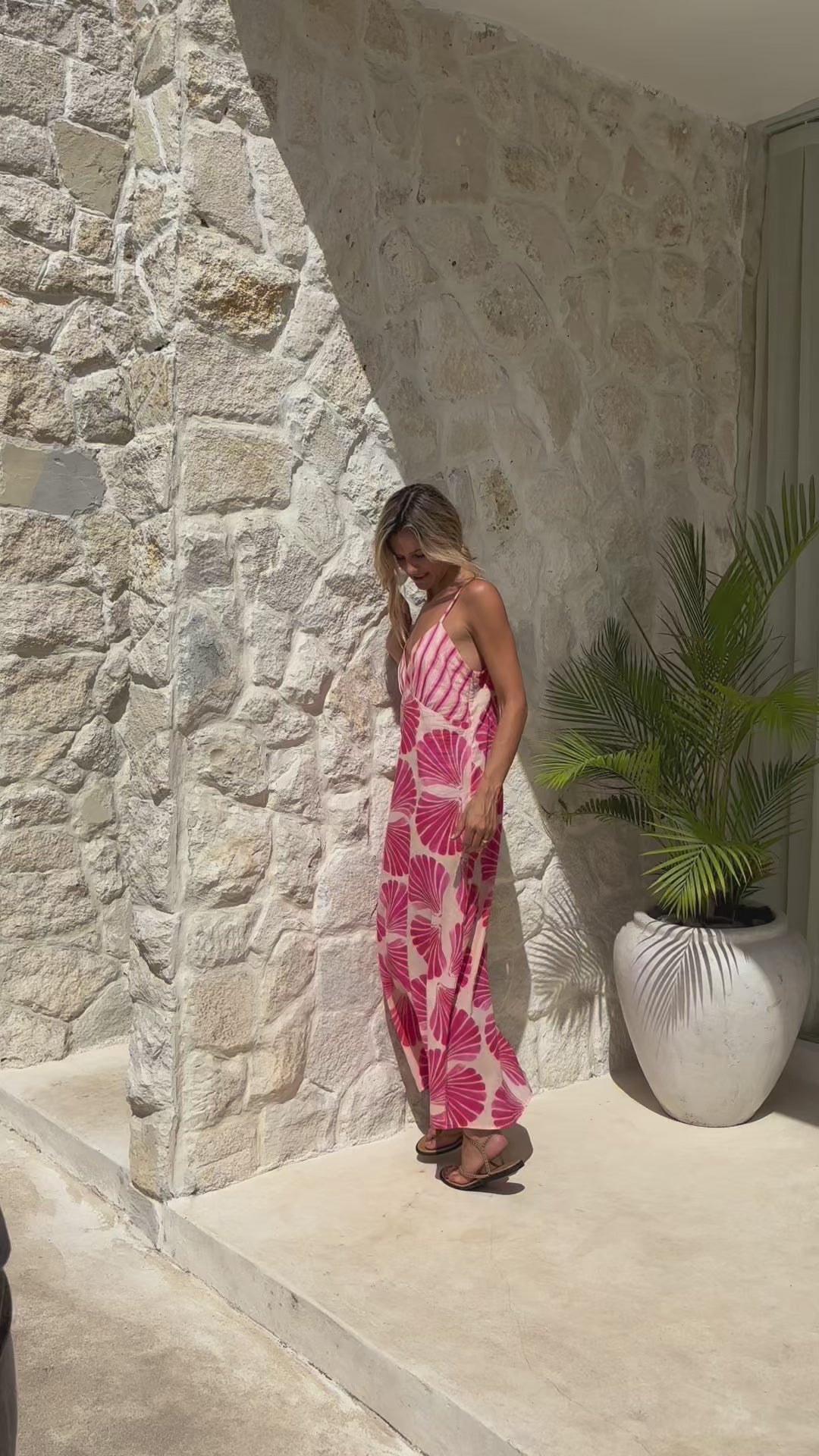 She's flirty and fun! Our slip maxi is such an effortlessly-cool fit, a relaxed but flattering shape to carry you from beach days to evening soirées. The romantic pink and coral shells are eye catching and a unique print made for ISC. These maxi's are hot!